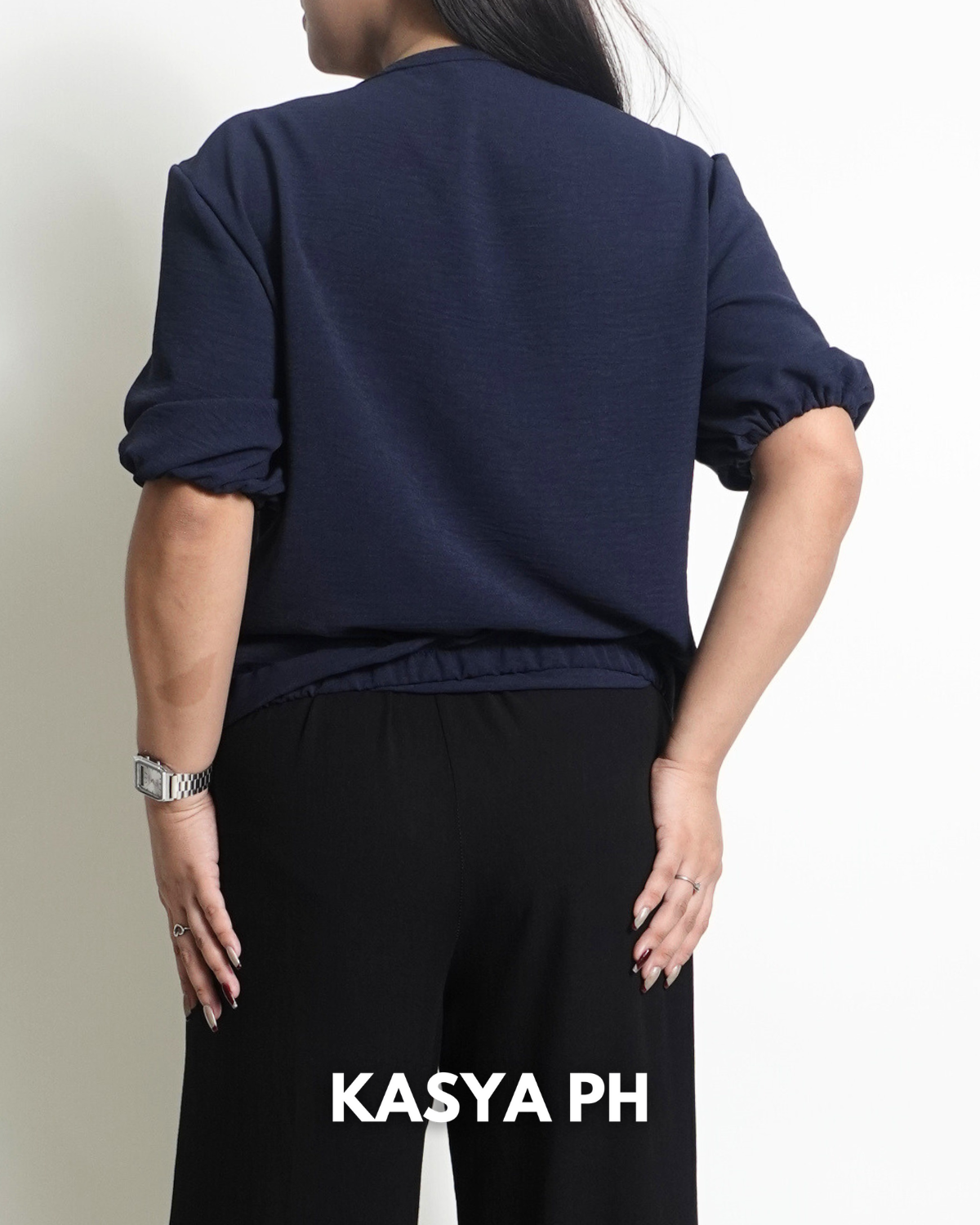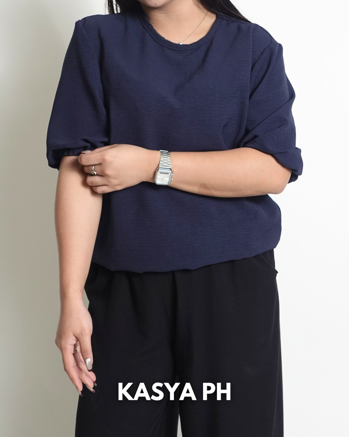 Designed with a relaxed fit that doesn’t cling, it offers a flattering silhouette and effortless movement throughout the day. The classic navy blue color is timeless and easy to style. Pair it with skirts, wide-leg pants, or denim for a look that works for the office, casual outings, or everyday wear.