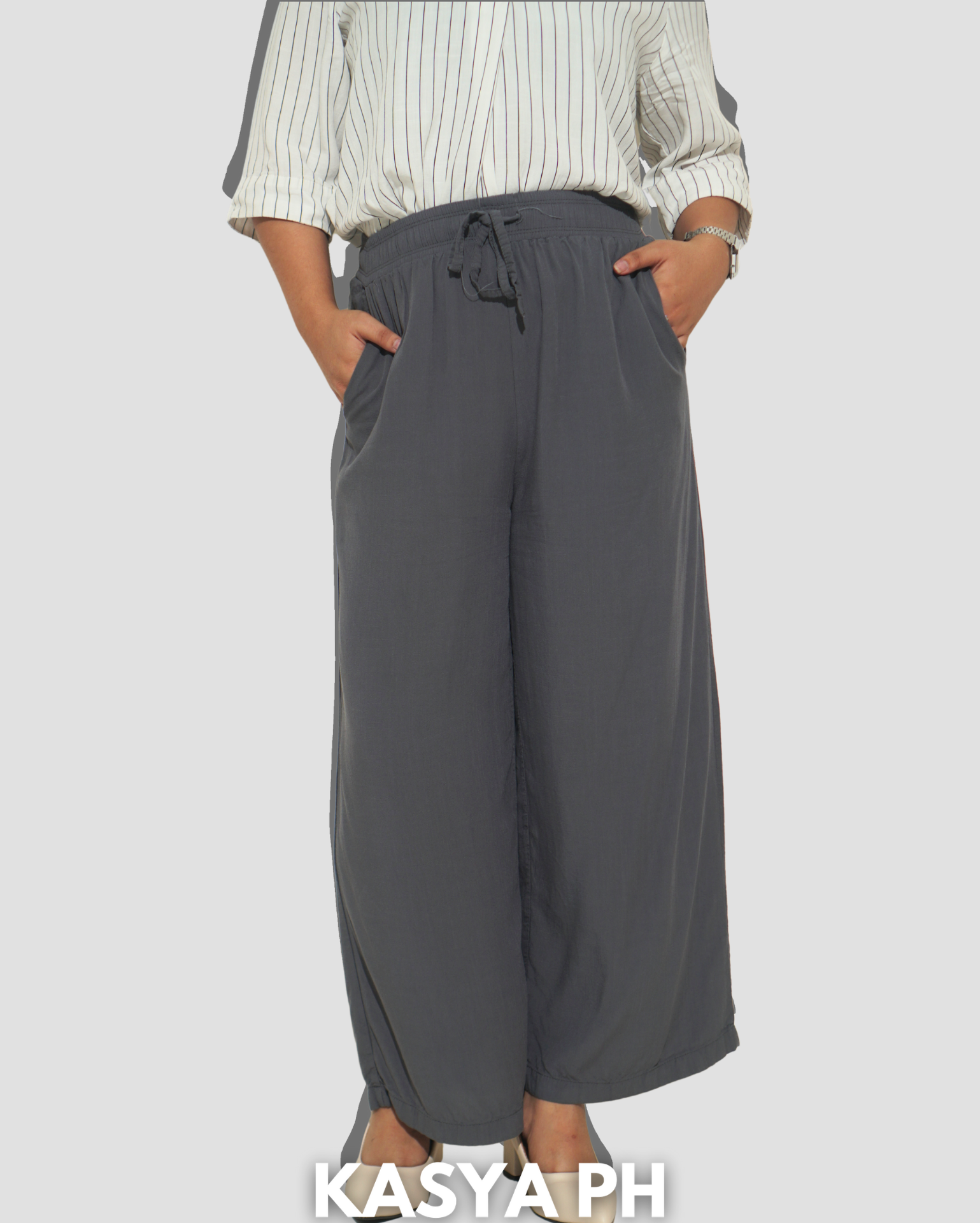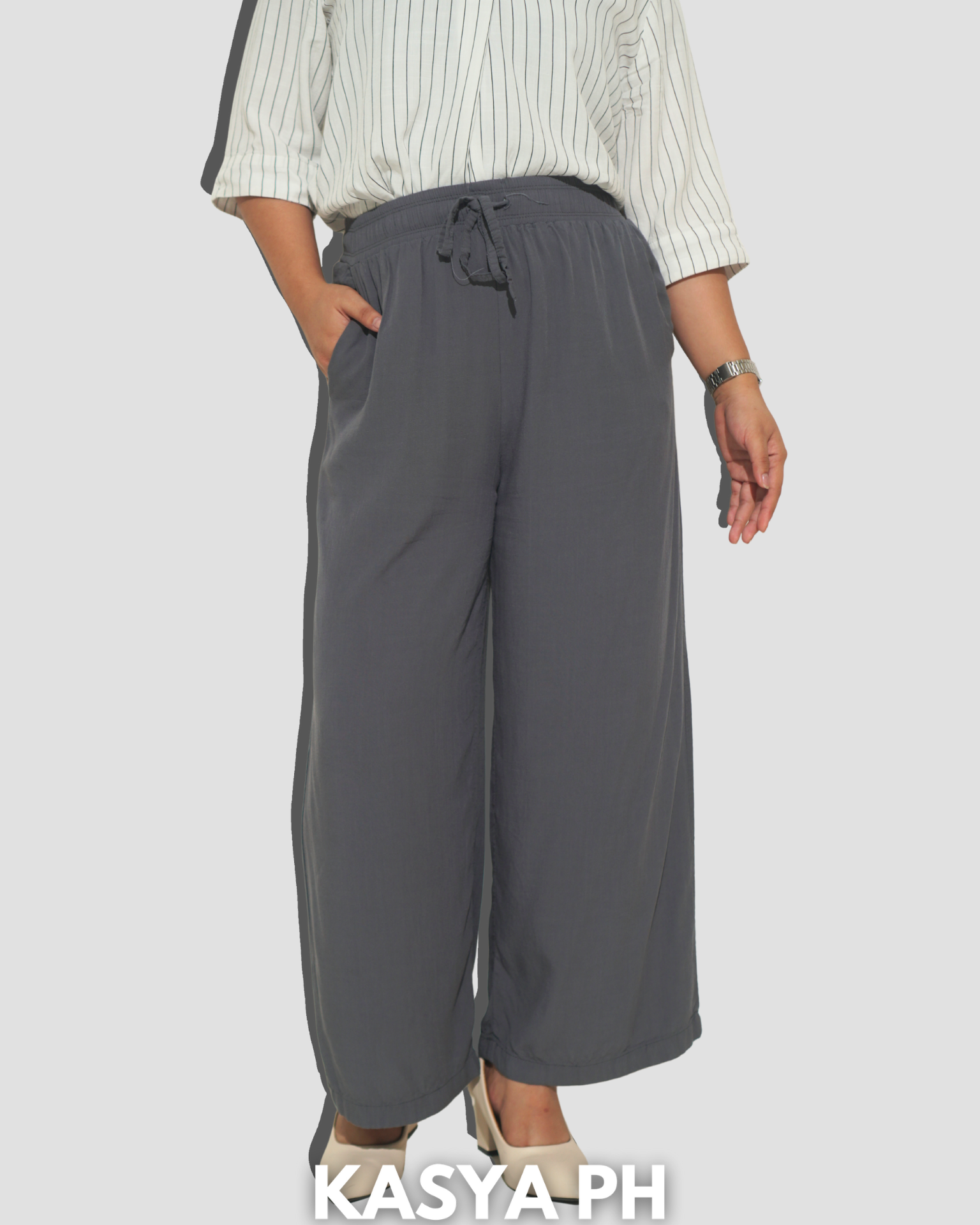 Made with our signature flowy and breathable fabric, it drapes naturally to create a long, leg-lengthening silhouette. The adjustable waistband keeps the fit comfortable and forgiving, especially around the tummy area — so you can move confidently all day.