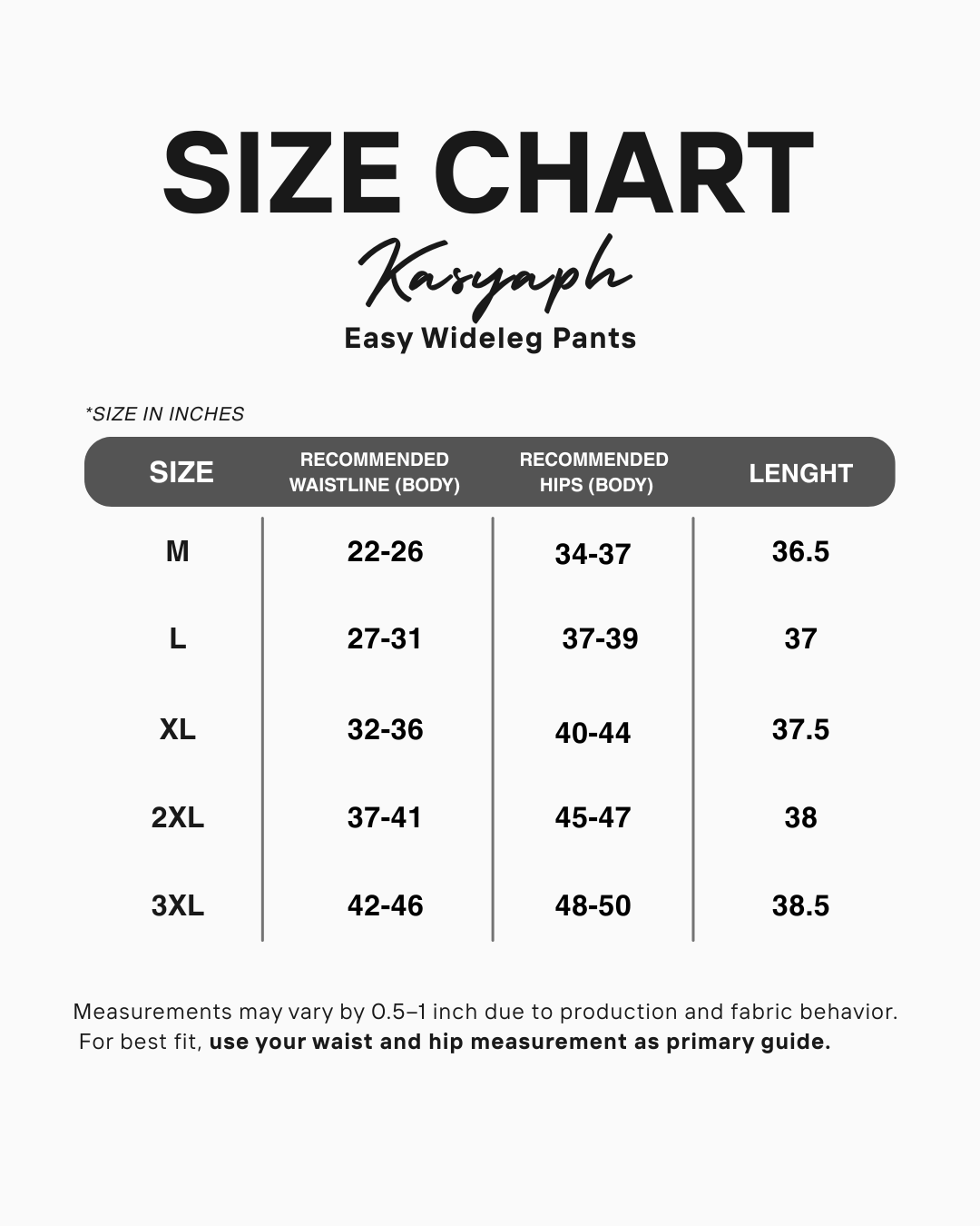 COSTA Wide-Leg Pants – Linen (Striped) Size Chart